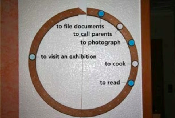 Et les place sur une date choisie sur le calendrierL’utilisateur écrit ses buts sur les aimantsQuand la deadline est atteinte, l’aimant est éjecté et tombe au sol, forçant l’utilisateur à un choix