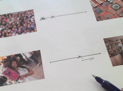 Une ligne relie les deux images et on demande à l’utilisateur de faire une croix sur ce continuum, à l’endroit correspondant à son ressenti par rapport au concept de produit présenté. Cette ligne représente en fait une échelle de mesure, mais n’est pas graduée afin de laisser le participant s’exprimer librement et ne pas brider son imaginaire.